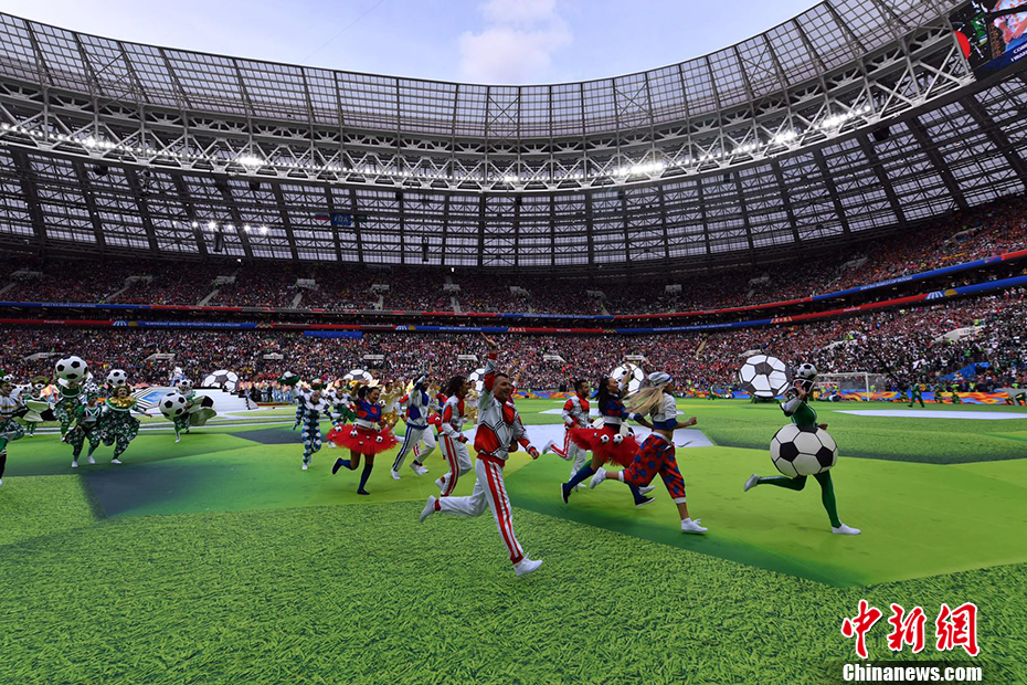 北京时间6月14日22点30分,俄罗斯世界杯开幕式在莫斯科卢日尼基体育场上演,这意味着四年一度的足球盛宴正式拉开帷幕。虽然开幕式表演时长不长但极具创意。开幕式结束后,北京时间23点,世界杯的揭幕战将也在这儿打响。在国际足联公布的俄罗斯世界杯开幕式表演嘉宾名单当中,除了有俄罗斯著名女高音歌唱家阿依达·嘉丽弗莉娜、英国著名流行歌手罗比·威廉姆斯外,还有两届世界杯冠军得主罗纳尔多。此外,在开幕式上,还将有1561人表演团队练习颠球,该项目有望突破吉尼斯纪录。 中新社记者 毛建军 摄