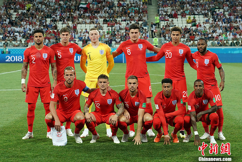 英格兰队首发阵容。 中新社记者 毛建军 摄