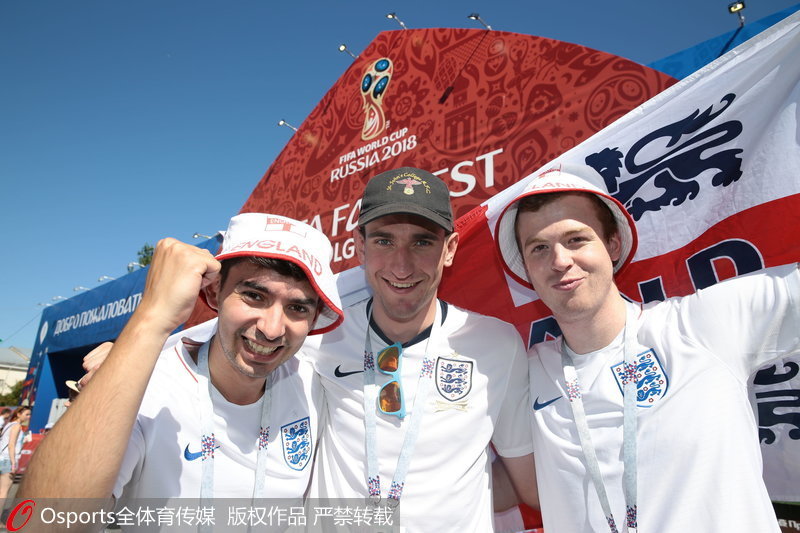 英格兰对阵突尼斯 球迷赛前挥舞旗帜造势