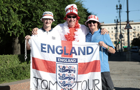 英格兰对阵突尼斯 球迷赛前挥舞旗帜造势