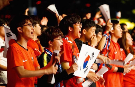 俄罗斯世界杯:韩国球迷助威韩国队首战