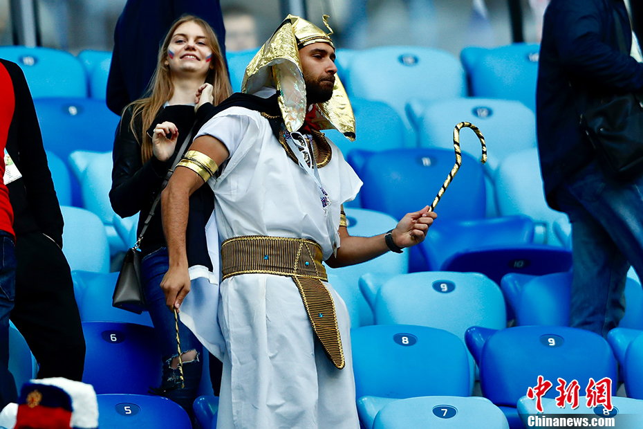 俄罗斯对阵埃及比赛前 场内满是“法老艳后”