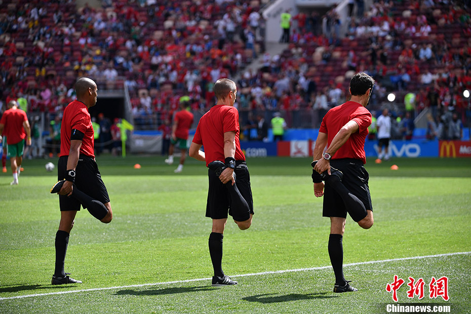 裁判员做准备活动。 中新社记者 毛建军 摄