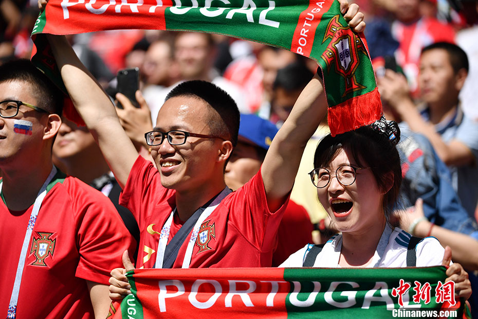 支持葡萄牙队的中国球迷。 中新社记者 毛建军 摄