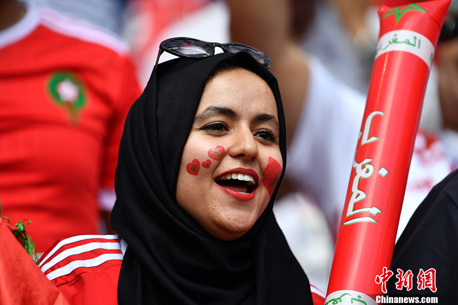 一位摩洛哥女性球迷。 中新社记者 毛建军 摄