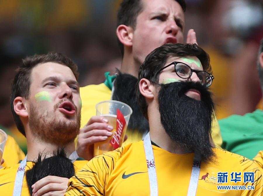 ↑6月21日,澳大利亚队球迷在开赛前。当日,在萨马拉进行的2018俄罗斯世界杯足球赛C组小组赛中,丹麦队对阵澳大利亚队。 新华社记者费茂华摄