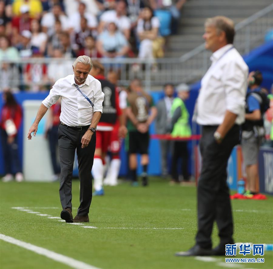 ↑6月21日,澳大利亚队主教练范马尔维克(左)在比赛中。当日,在萨马拉进行的2018俄罗斯世界杯足球赛C组小组赛中,澳大利亚队对阵丹麦队。 新华社记者费茂华摄