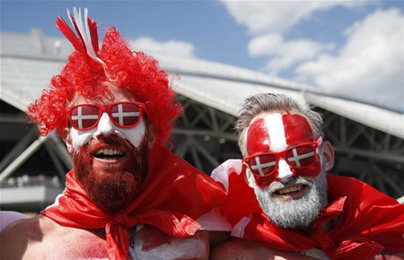 丹麦队对阵澳大利亚队,球迷欢聚一堂