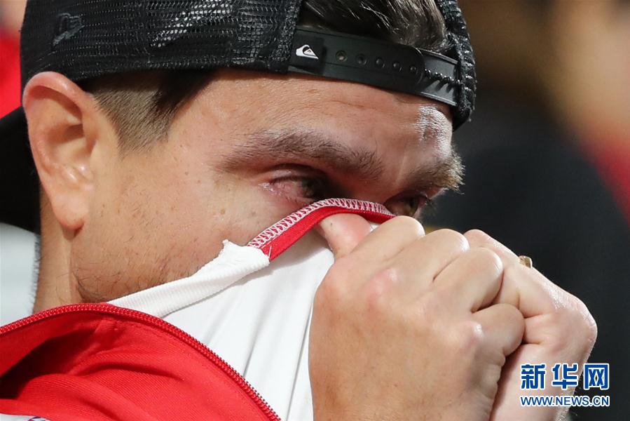 6月21日,一名秘鲁队球迷在比赛后情绪低落。当日,在叶卡捷琳堡进行的2018俄罗斯世界杯足球赛C组小组赛中,法国队以1比0战胜秘鲁队。 新华社记者白雪骐摄
