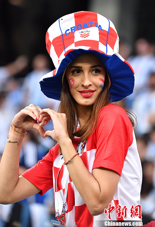 北京时间6月22日凌晨,2018俄罗斯世界杯D组次轮阿根廷队与克罗地亚队的较量在下诺夫哥罗德打响。凭借下半场的三粒进球,克罗地亚3-0战胜夺冠热门阿根廷队,小组积6分提前晋级16强,阿根廷队小组出线形势艰难。 中新社记者 毛建军 摄