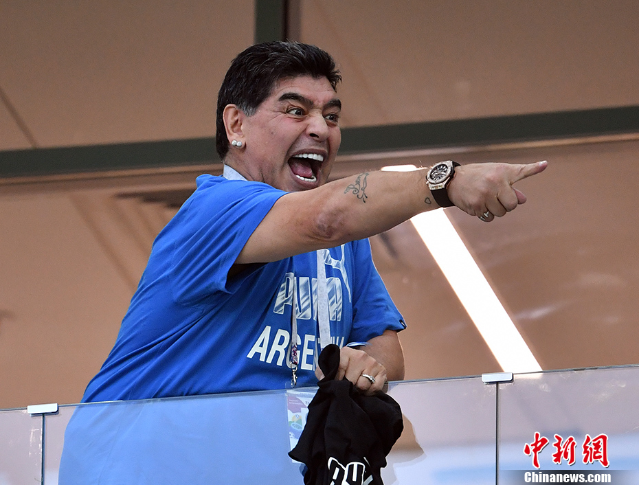 马拉多纳异常兴奋。 中新社记者 毛建军 摄