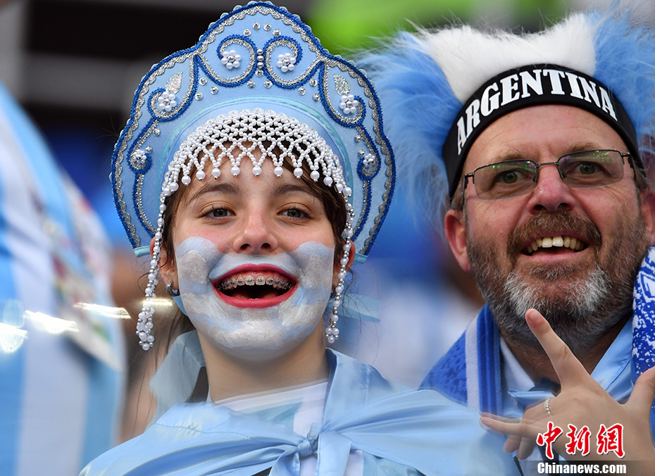 北京时间6月22日凌晨,2018俄罗斯世界杯D组次轮阿根廷队与克罗地亚队的较量在下诺夫哥罗德打响。凭借下半场的三粒进球,克罗地亚3-0战胜夺冠热门阿根廷队,小组积6分提前晋级16强,阿根廷队小组出线形势艰难。 中新社记者 毛建军 摄