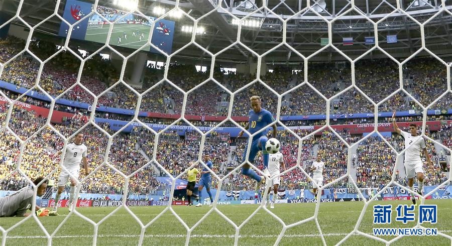 ↑6月22日,巴西队球员内马尔打入本届世界杯个人首粒进球。当日,在圣彼得堡进行的2018俄罗斯世界杯足球赛E组小组赛中,巴西队以2比0战胜哥斯达黎加队。 新华社记者曹灿摄