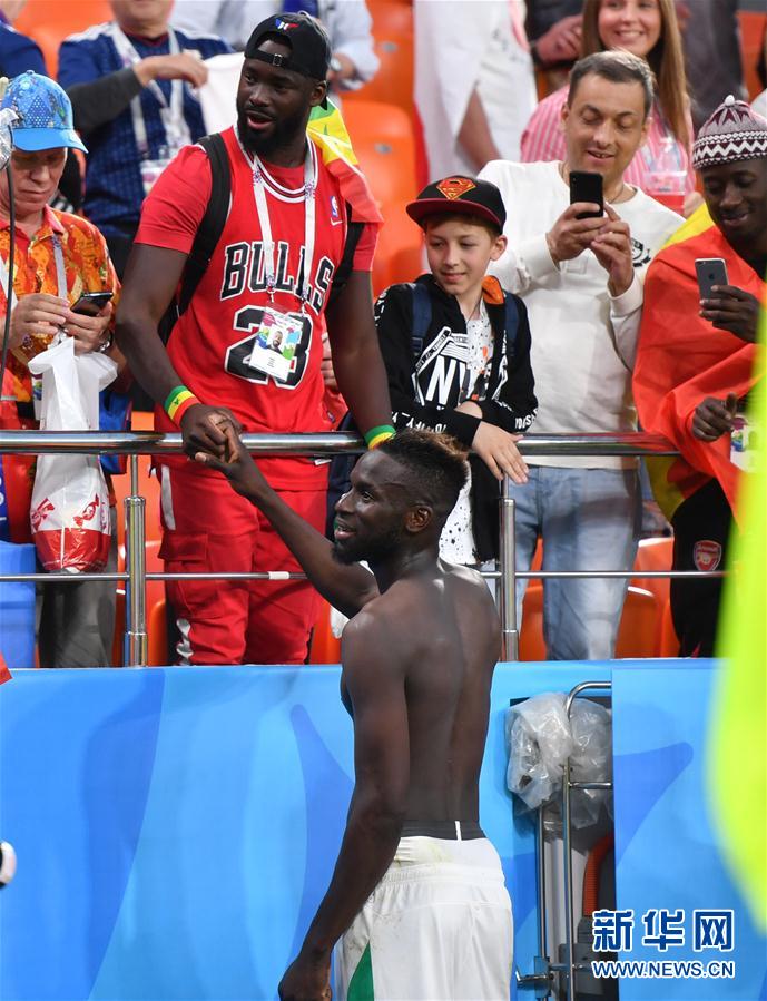 6月24日,塞内加尔队球员萨·萨内赛后将球衣送给球迷。当日,在叶卡捷琳堡进行的2018俄罗斯世界杯足球赛H组小组赛中,日本队以2比2战平塞内加尔队。 新华社记者刘大伟摄