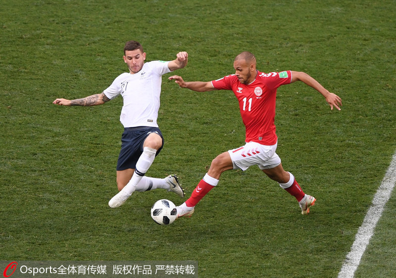 人民网北京6月26日电(杨乔栋)北京时间6月26日晚,2018俄罗斯世界杯小组赛最后一轮继续进行。在C组法国对阵秘鲁的比拼中,虽然双方轮换多人出场,但全场机会寥寥。最终,经过90分钟的较量,法国0-0战平丹麦。此役过后,两队各取1分,法国7分小组第一,丹麦5分小组第二,携手晋级淘汰赛。值得一提的是,本场比赛的战果也是本届世界杯的首场“0-0”。