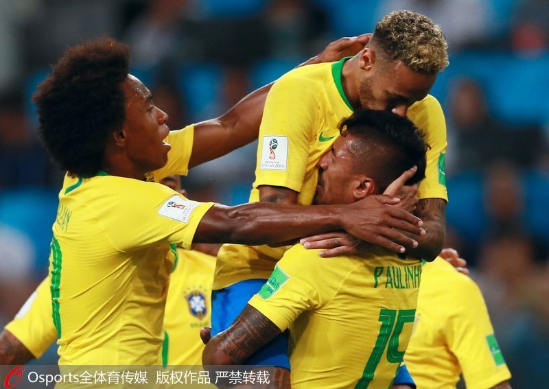 人民网北京6月28日电(赵欣悦) 北京时间6月28日凌晨,2018俄罗斯世界杯结束了E组最后一轮的一场较量,桑巴军团凭借保利尼奥和席尔瓦的两粒进球,以2-0击败塞尔维亚。这样,巴西队便凭借两胜一平的战绩以小组第一从E组出线。本场比赛,巴西在上半场率先进球,取得领先,落后的塞尔维亚在下半场展开猛攻,巴西队门前多次遭遇险情,可惜塞尔维亚临门一脚总是偏出,始终未能破门。反观巴西在顶住对手多次进攻后,终于利用一次角球,由席尔瓦头球破门,再次扩大领先优势,最终,他们将2-0的比分保持到终场,顺利晋级十六强,他们将在1/8决赛面对墨西哥队。(Osports全体育传媒专供人民体育 版权作品 严禁转载)