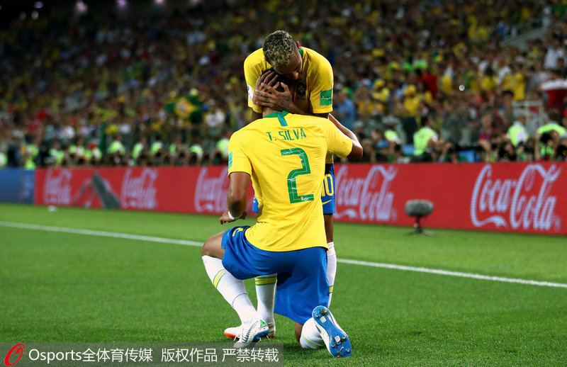 人民网北京6月28日电(赵欣悦) 北京时间6月28日凌晨,2018俄罗斯世界杯结束了E组最后一轮的一场较量,桑巴军团凭借保利尼奥和席尔瓦的两粒进球,以2-0击败塞尔维亚。这样,巴西队便凭借两胜一平的战绩以小组第一从E组出线。本场比赛,巴西在上半场率先进球,取得领先,落后的塞尔维亚在下半场展开猛攻,巴西队门前多次遭遇险情,可惜塞尔维亚临门一脚总是偏出,始终未能破门。反观巴西在顶住对手多次进攻后,终于利用一次角球,由席尔瓦头球破门,再次扩大领先优势,最终,他们将2-0的比分保持到终场,顺利晋级十六强,他们将在1/8决赛面对墨西哥队。(Osports全体育传媒专供人民体育 版权作品 严禁转载)