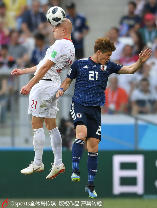 人民网北京6月29日电(赵欣悦)北京时间6月28日22时,2018俄罗斯世界杯展开了H组最后一轮的较量,由波兰对阵日本。赛前,波兰两连败确定出局,而日本只需要一场平局便能出线。上半场比赛,日本打出多次威胁进攻,但并未实现得分,双方以0-0进入下半场。易边再战,波兰队在第58分钟利用任意球机会,由贝德纳雷克抢点破门得手,波兰取得1-0的领先。随后的比赛,日本队没有找到更多好机会,最终以0-1不敌波兰。另一场比赛哥伦比亚1-0击败塞内加尔,以小组头名出线。日本和塞内加尔净胜球与进球数均相同,日本依靠黄牌数少惊险晋级,他们将在淘汰赛面对G组第一。(Osports全体育传媒专供人民体育 版权作品 严禁转载)