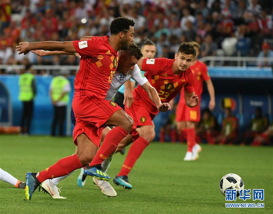 6月28日,英格兰队球员瓦尔迪(中)在比赛中突破。当日,在加里宁格勒进行的2018俄罗斯世界杯足球赛G组小组赛中,比利时队以1比0战胜英格兰队,两队携手晋级十六强。 新华社记者杜宇摄