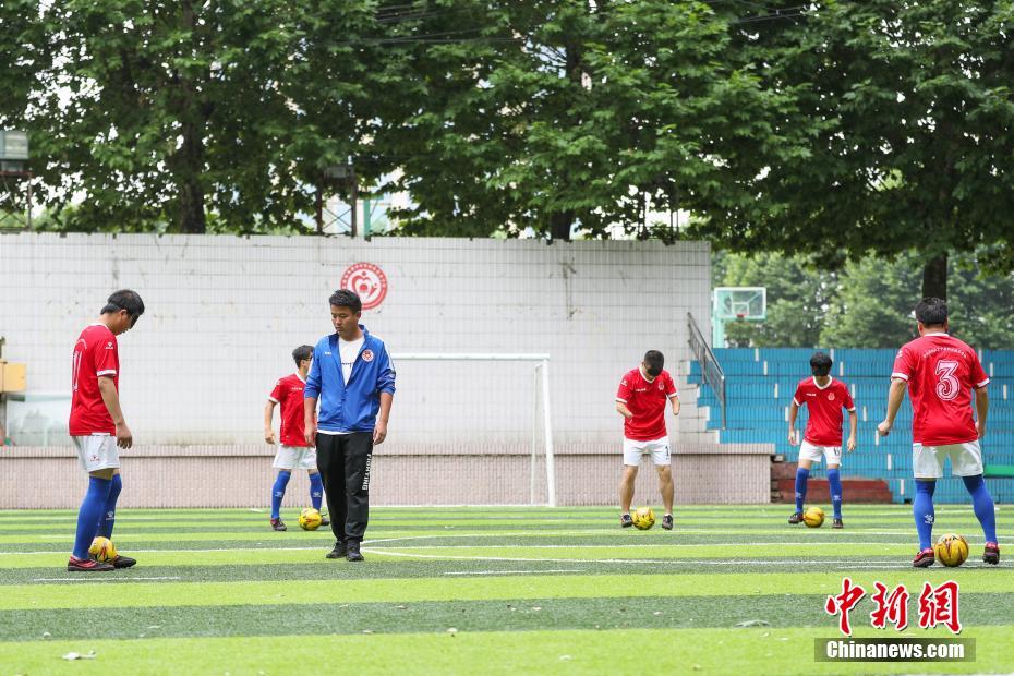 6月29日,贵阳市盲人足球队在贵州特教中职校进行训练。当日,位于贵阳市观山湖区的贵州特殊教育中等职业技术学校球场内,由10名盲人学生组成的贵阳市首支盲人足球队开始了他们的暑期训练,队员中年纪最大的38岁,最小的18岁,他们需要佩戴眼罩,用耳朵听球辨别方向,完成停球、运球、射门等动作。2018年4月,贵州特殊教育中等职业技术学校作为贵州省残疾人体育训练基地,首次开设盲人足球课,成立贵阳首支正规化盲人足球队。中新社记者 贺俊怡 摄
