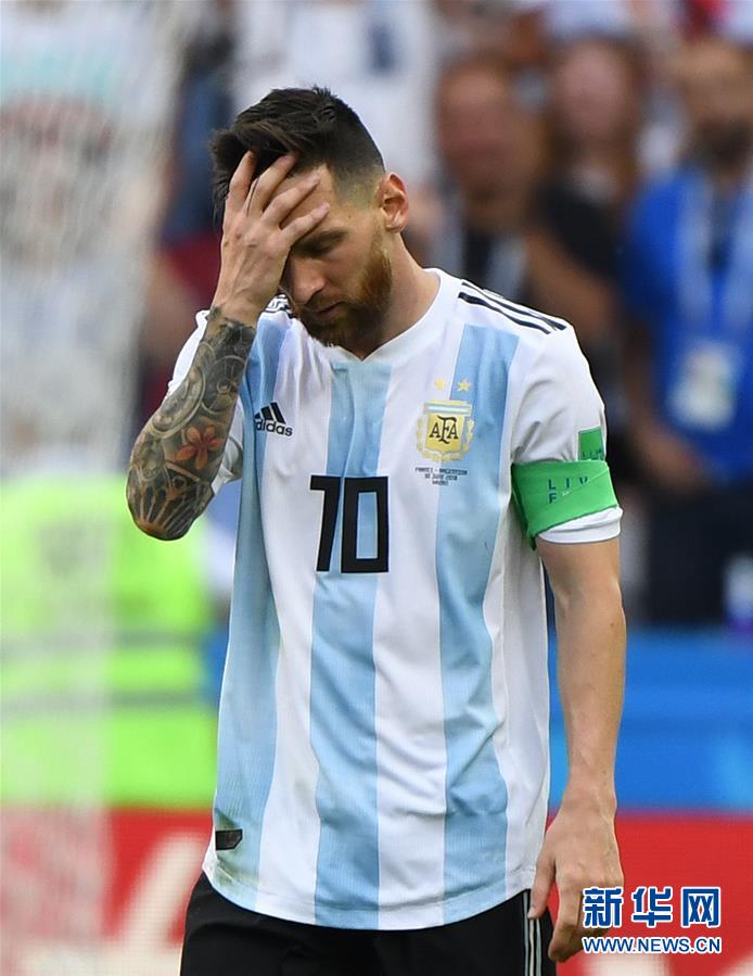 6月30日,阿根廷队球员梅西在比赛中神情沮丧。 新华社记者 李尕 摄