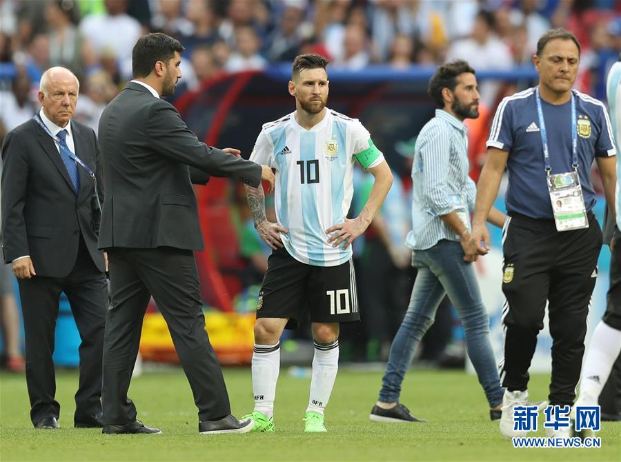 6月30日,阿根廷队球员梅西(中)在比赛后。 新华社记者 鲁金博 摄