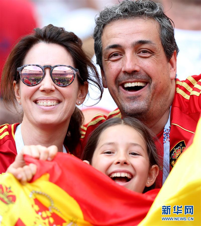 7月1日,西班牙队球迷在比赛前。当日,在莫斯科进行的2018俄罗斯世界杯足球赛八分之一决赛中,西班牙队对阵俄罗斯队。 新华社记者杨磊摄