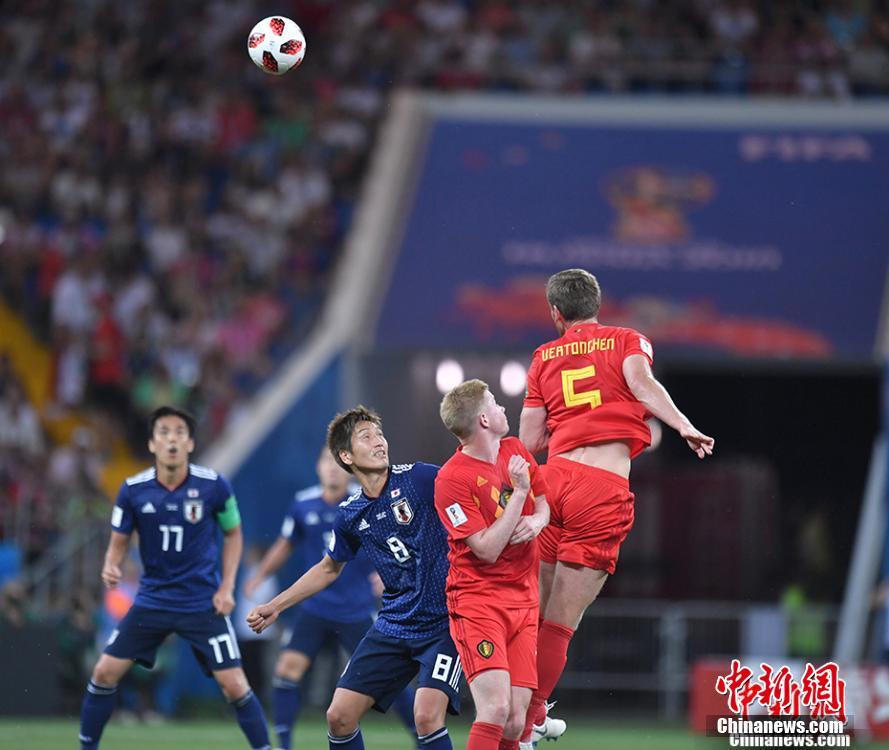 下半场开始仅3分钟,日本队幸运取得领先。柴崎岳在中圈向前传出直塞球,比利时后卫维尔通亨停球失误,皮球正好来到原口元气脚下,他停球后右脚低射球门左侧入网,1:0。 中新社记者 田博川 摄