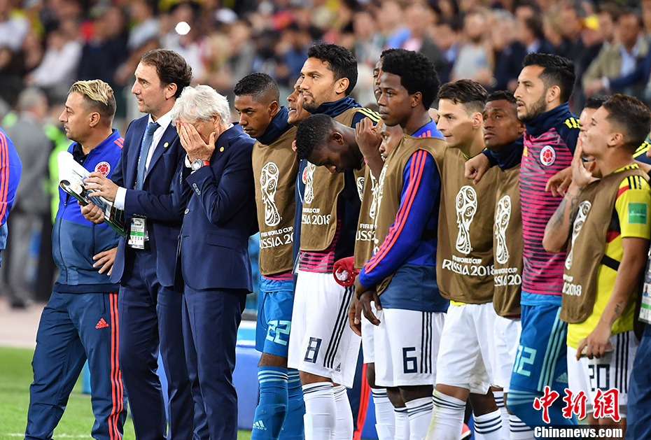 点球大战第一轮,法尔考和凯恩的点球分别命中;随后夸德拉多和拉什福德同样再次命中,前两轮双方打成2:2;第三轮穆里尔将球罚进,但是亨德森的射门却被哥伦比亚门将扑出;第四轮哥伦比亚队乌里贝的射门打在横梁上弹出,特里皮尔将球罚进,两队战成4:4;最后一轮巴卡的射门被门将扑出,英格兰队戴尔命中,最终英格兰点球大战4:3战胜对手,总比分5:4艰难晋级八强。 中新社记者 毛建军 摄