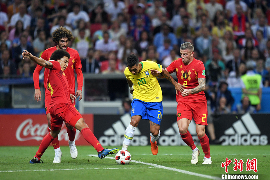 北京时间7月7日晚2:00,俄罗斯世界杯第二场1/4决赛在喀山进行,经过90分钟的激战,比利时以2:1险胜巴西,晋级四强,他们在半决赛中的对手将是法国队。 中新社记者 田博川 摄