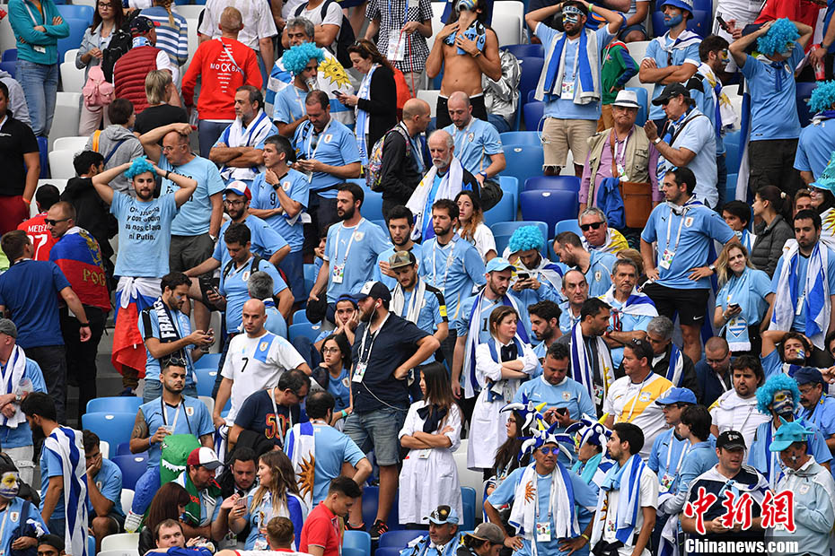 看台上失望的乌拉圭球迷。 中新社记者 毛建军 摄