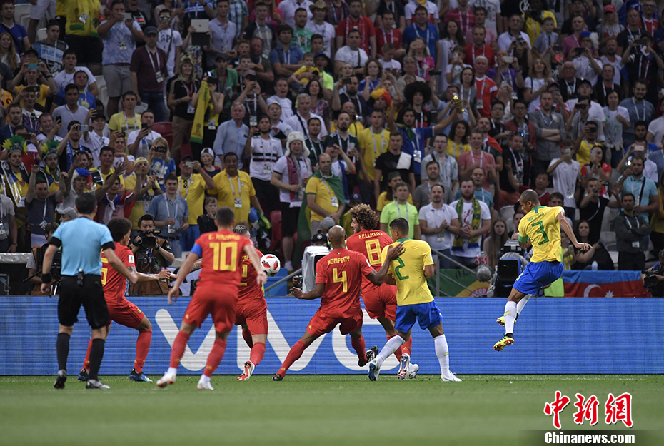 北京时间7月7日晚2:00,俄罗斯世界杯第二场1/4决赛在喀山进行,经过90分钟的激战,比利时以2:1险胜巴西,晋级四强,他们在半决赛中的对手将是法国队。 中新社记者 田博川 摄