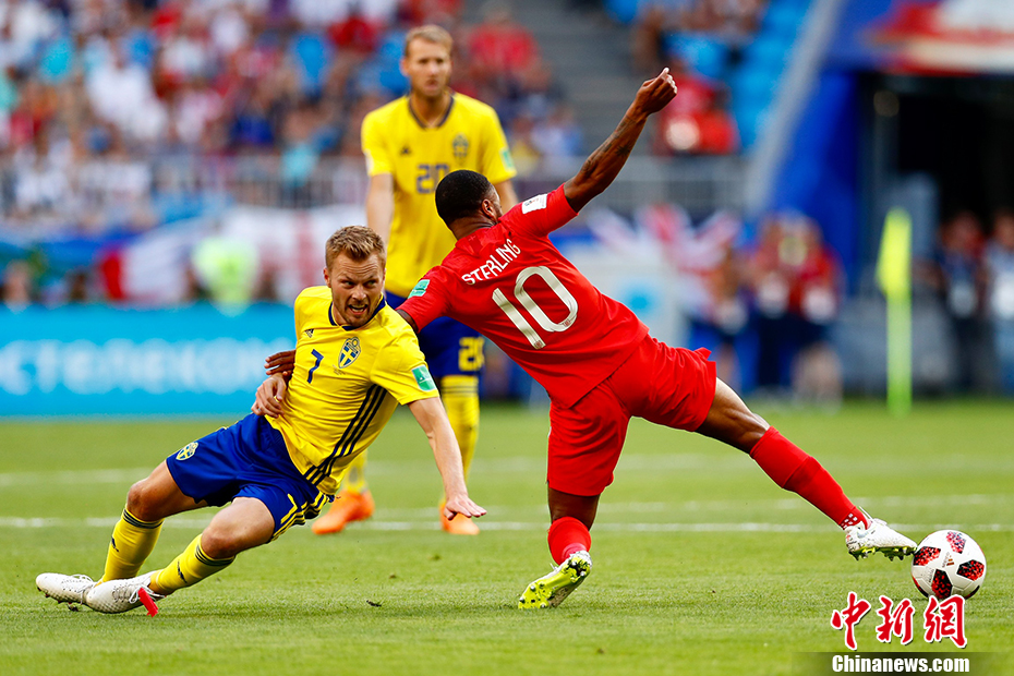 斯特林同塞巴斯蒂安-拉尔森拼抢。 中新社记者 富田 摄