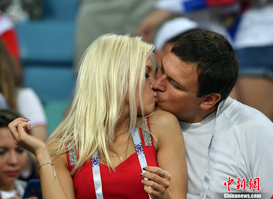 球迷激情热吻。 中新社记者 毛建军 摄