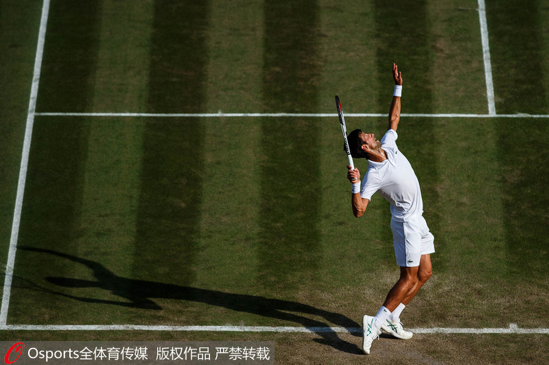 人民网北京7月8日电(郝帅 实习生康正伟) 北京时间7月8日凌晨,2018年温布尔登网球公开赛男单第3轮,德约科维奇在先丢一盘的情况下连赢三盘,以4-6/6-3/6-2/6-4淘汰赛会21号种子、本土选手埃德蒙德,职业生涯第44次闯入大满贯男单16强。(Osports全体育传媒专供人民体育 版权作品 严禁转载)