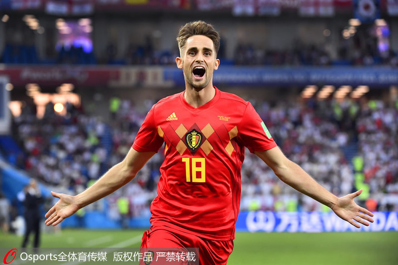 小组赛第三场,比利时1:0小胜英格兰,贾努扎伊庆祝进球