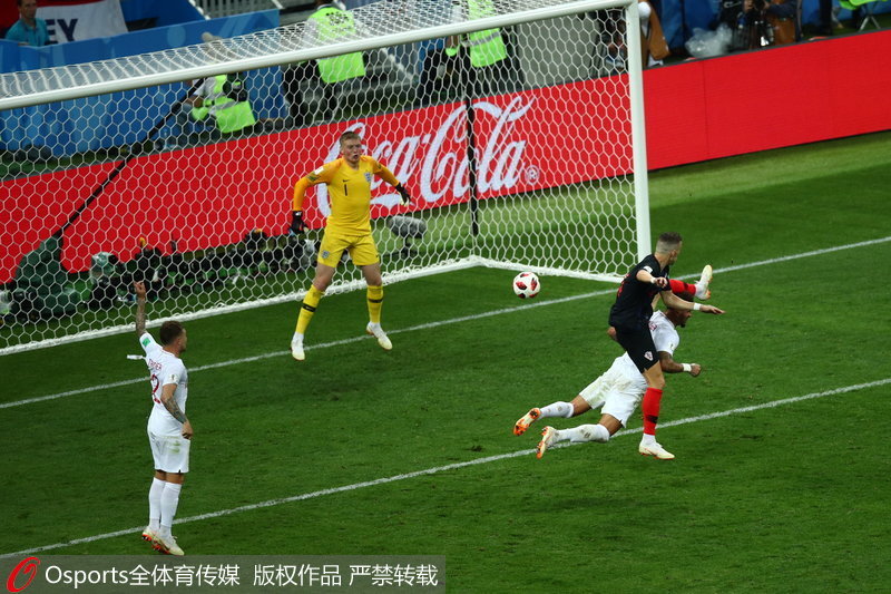 人民网北京7月12日电(赵欣悦 实习生谷思雨) 北京时间7月12日2时,2018俄罗斯世界杯展开第二场半决赛的较量,新军老兵英格兰与克罗地亚碰撞出扣人心弦的比赛。最终,双方在90分钟常规时间内战成1-1平进入加时,加时赛下半场,凭借曼朱基奇的进球,克罗地亚以2-1逆转英格兰,历史上首次闯入世界杯决赛。这也是克罗地亚第三场通过加时赛取得的胜利,他们将在北京时间7月14日23时同法国队争夺本届世界杯冠军。(Osports全体育传媒专供人民体育 版权作品 严禁转载)