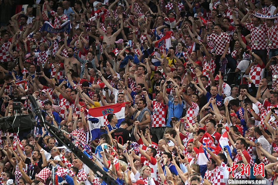 看台上激动的克罗地亚球迷,俨然“格子海洋”。 中新社记者 田博川 摄