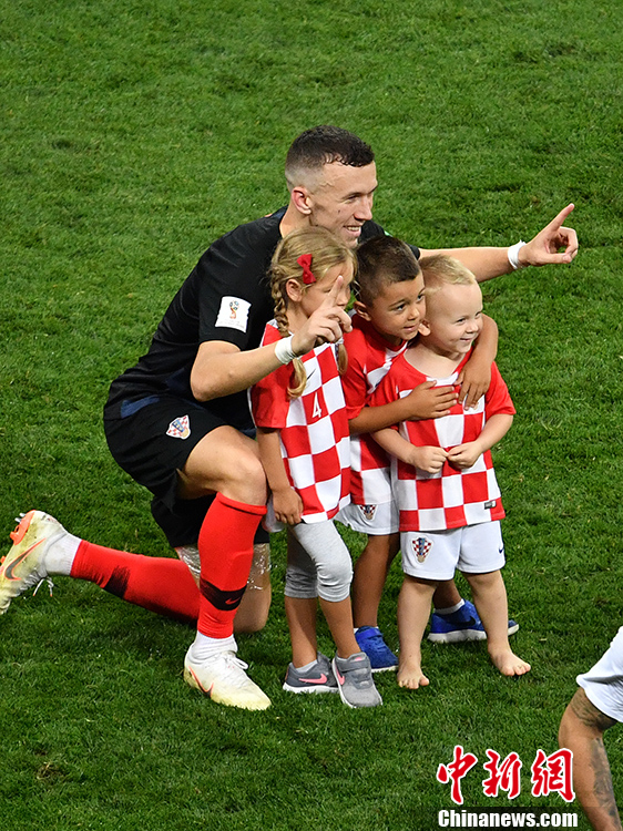 克罗地亚球员同小朋友合影。 中新社记者 毛建军 摄