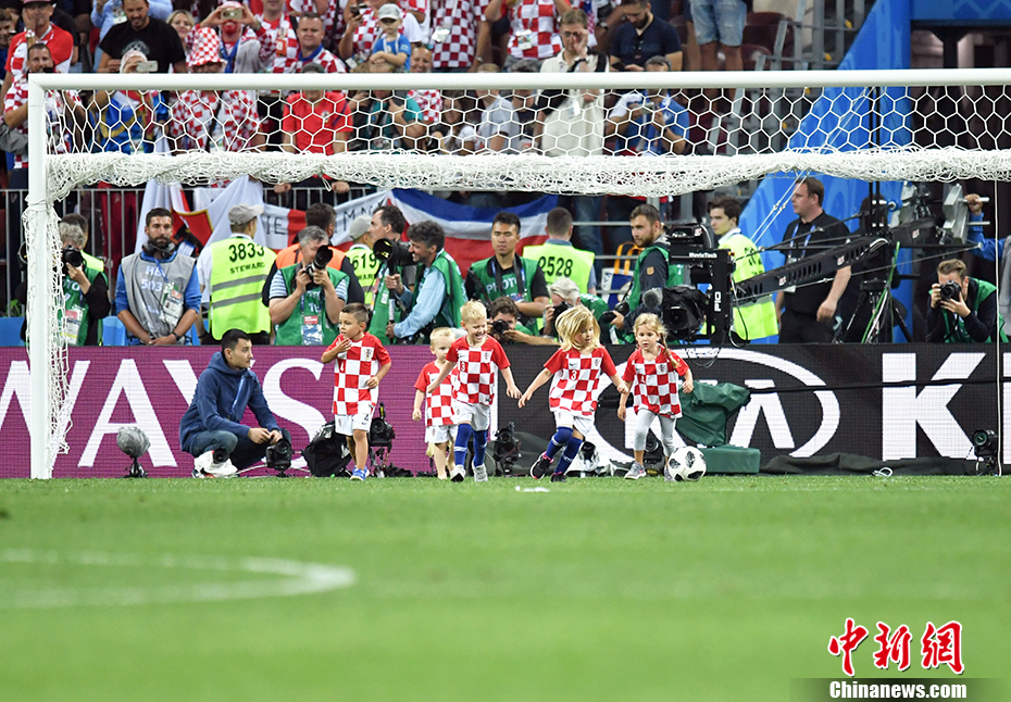 比赛结束后,几名克罗西亚小朋友走上绿茵场,开始了又一场“大战”。 中新社记者 田博川 摄