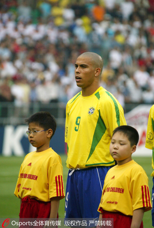 2002年8月31日,罗纳尔多由意甲国际米兰转会至西甲球队皇家马德里,并签了为期4年、价值4425万欧元的合同。巴西队罗纳尔多。