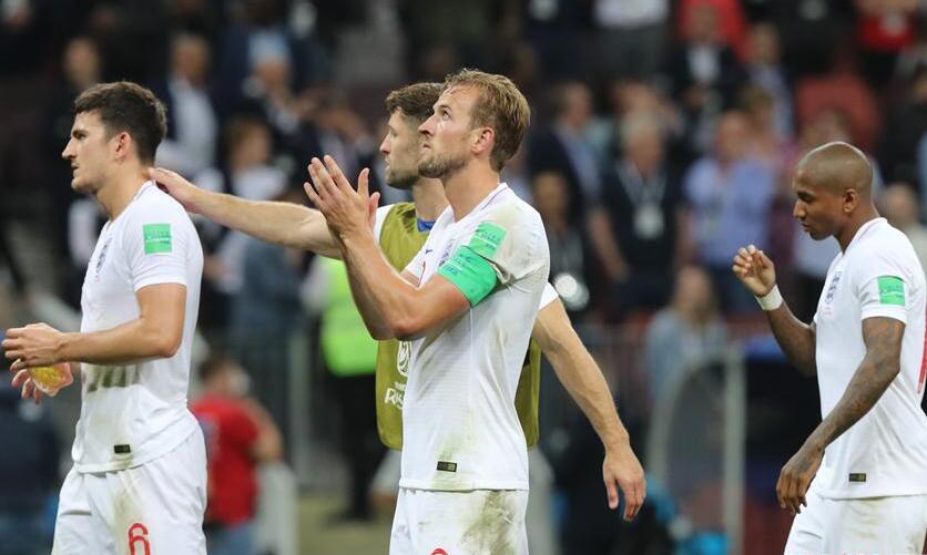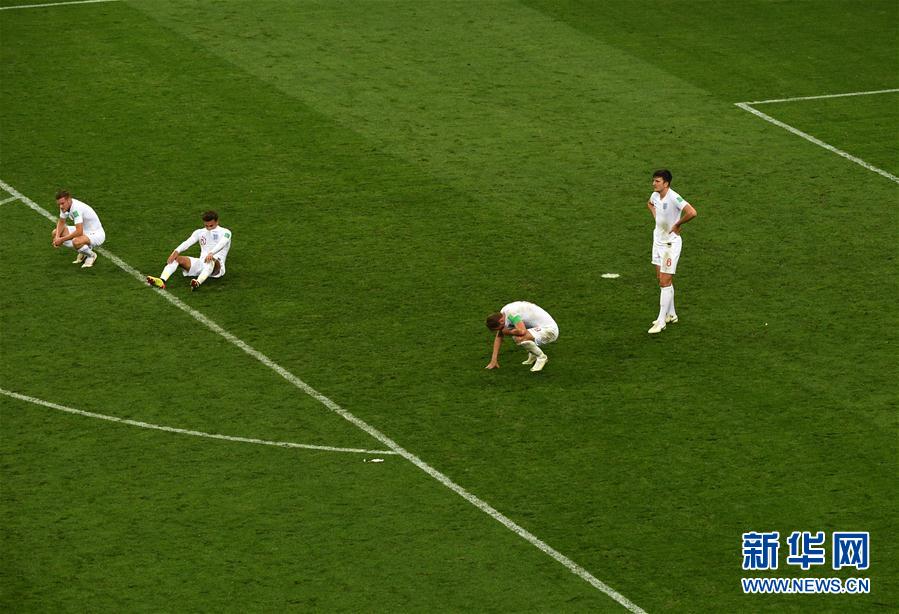 7月11日,英格兰队球员在比赛后情绪低落。当日,在莫斯科进行的2018俄罗斯世界杯足球赛半决赛中,英格兰队与克罗地亚队在90分钟内战成1比1平。最终,英格兰队经过加时赛以1比2不敌克罗地亚队,无缘决赛。新华社记者王毓国摄