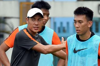 ↑7月12日,中国香港队主教练郭嘉诺(前)指导球员训练。当日,中国香港男子足球队在香港小西湾运动场进行训练,备战将于8月18日至9月2日在印度尼西亚举行的第18届亚运会。 新华社记者卢炳辉摄