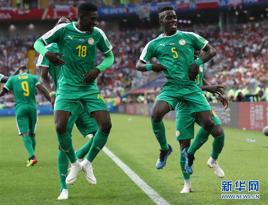 进球瞬间,激情澎湃。在四年一次的世界杯舞台上,身披国家队战袍的球员们将球送入对方大门,他们用各种创意庆祝方式表达内心的喜悦,充满了个性色彩。图为6月19日,在俄罗斯世界杯足球赛H组塞内加尔队对阵波兰队的比赛中,塞内加尔队球员跳起传统舞蹈庆祝进球。最终,塞内加尔队以2比1战胜波兰队。新华社记者费茂华摄