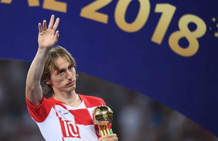 7月15日,国际足联主席因凡蒂诺(前)在颁奖仪式上。颁奖仪式在大雨中进行。当日,在莫斯科进行的2018俄罗斯世界杯足球赛决赛中,法国队以4比2战胜克罗地亚队,继1998年后再夺世界杯冠军。 新华社记者杨磊摄