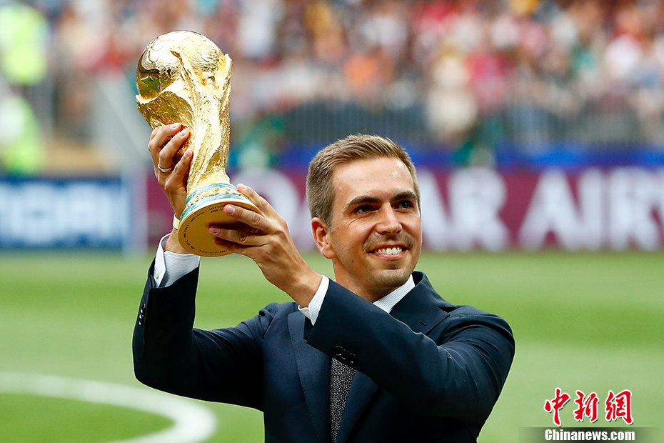 拉姆携大力神杯亮相。 中新社记者 富田 摄