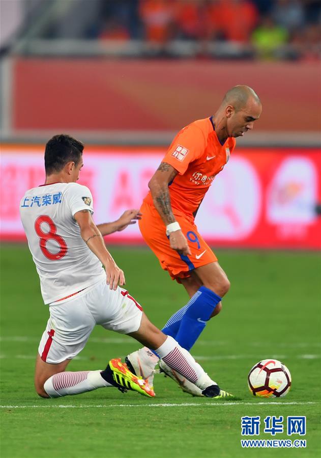 ↑7月17日,山东鲁能泰山队球员塔尔德利(右)在比赛中突破。 当日,在2018赛季中超联赛第12轮比赛中,山东鲁能泰山队主场迎战上海上港队。 新华社记者朱峥摄