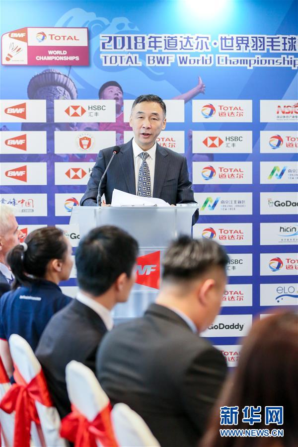 ↑7月17日,2018年羽毛球世锦赛赛会组委会副秘书长程向阳在抽签仪式上讲话。 当日,2018年羽毛球世锦赛抽签仪式在马来西亚吉隆坡举行。本届羽毛球世锦赛将于7月30日到8月5日在中国南京举行。 新华社记者朱炜摄