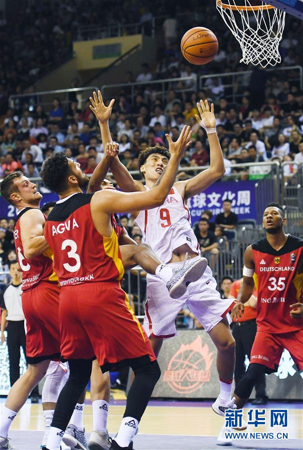 ↑7月17日,中国队球员时德帅(右二)在比赛中拼抢。新华社记者季春鹏摄
