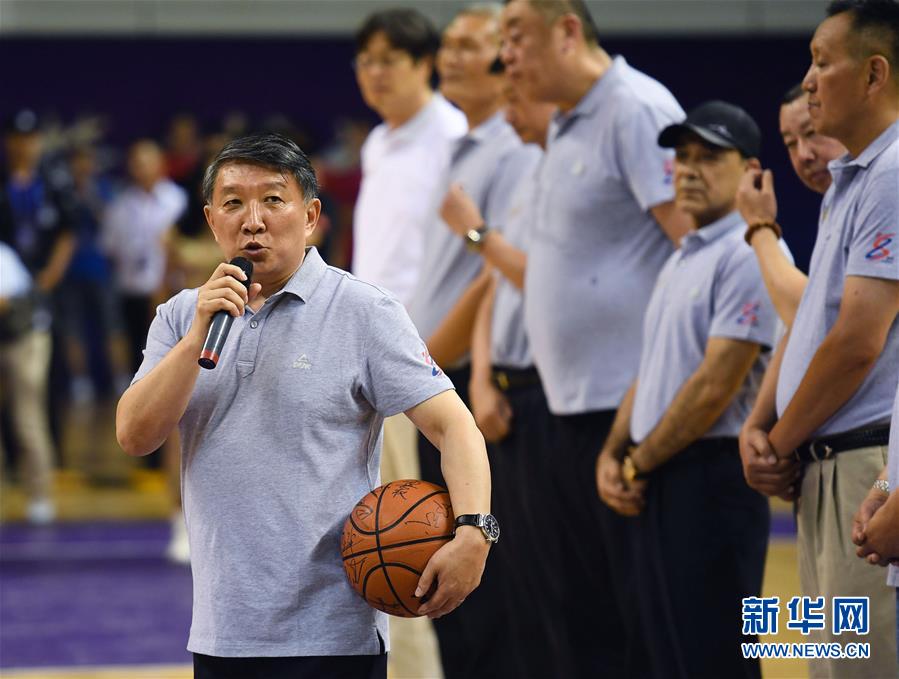 ↑7月17日,率领“黄金一代”首次打入奥运会八强的著名教练宫鲁鸣(左)寄语中国国奥队员。 当日,2018八国男篮争霸赛A组比赛在江苏苏州举行。中国国奥队以62比65不敌德国国家队。在比赛间隙,曾创造首次打进奥运会八强历史的中国男篮“黄金一代”亮相赛场。 新华社记者季春鹏摄